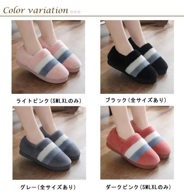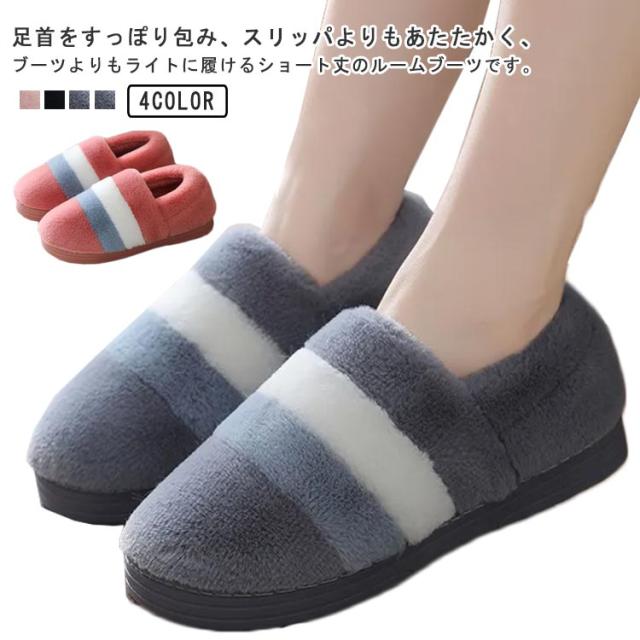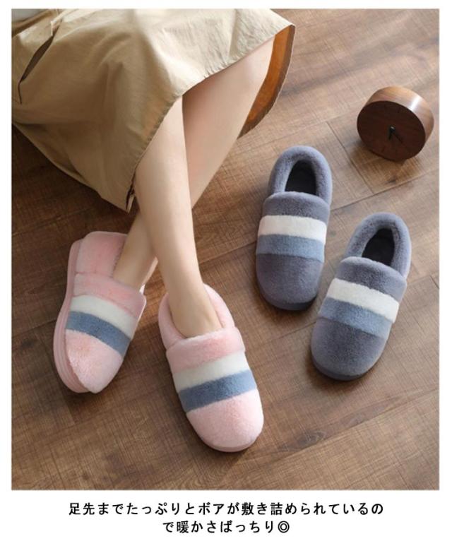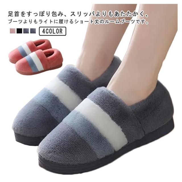 もこもこスリッパ レディース メンズ ルームシューズ 冬 もこもこ ふわふわ スリッパ かかと付き あったか マイクロファイバー 室内履き ルームブーツ 足首 足元 暖かい 防寒 発熱 配色 ボーダー柄 大人 かわいい おしゃれ 洗える 滑り止め 【送無】