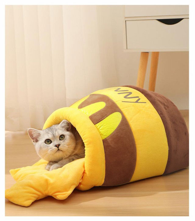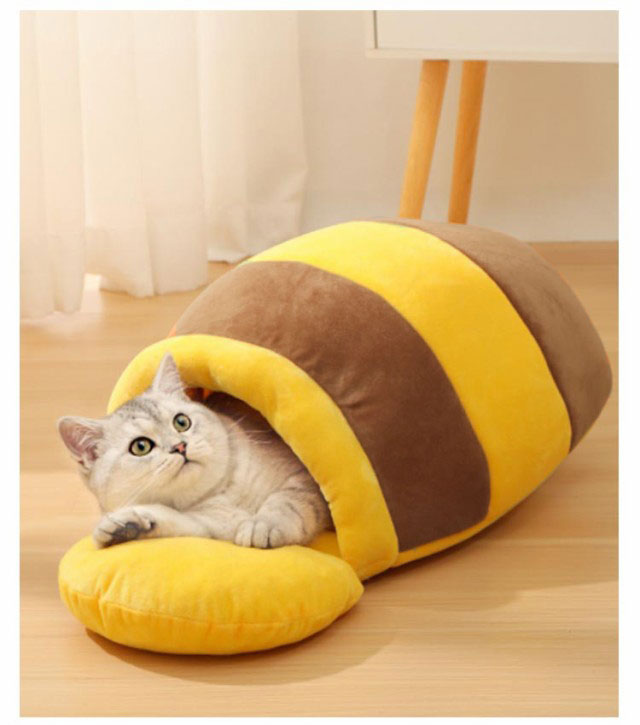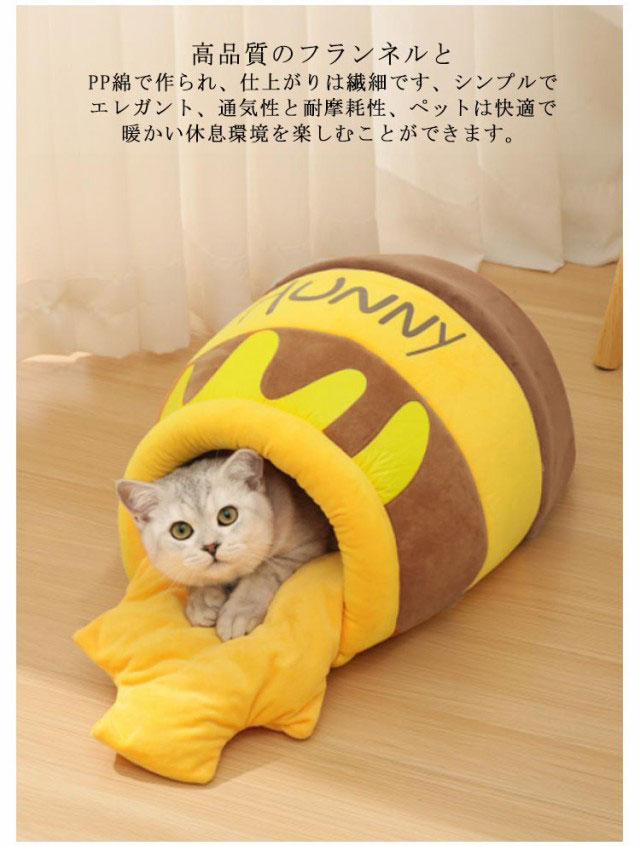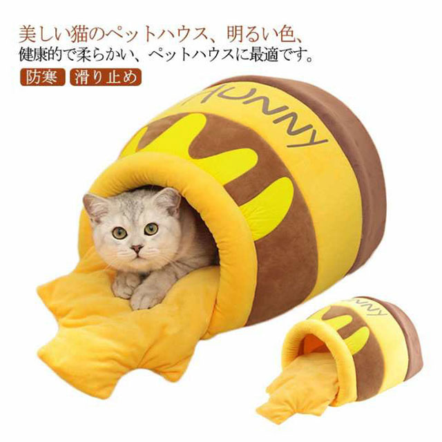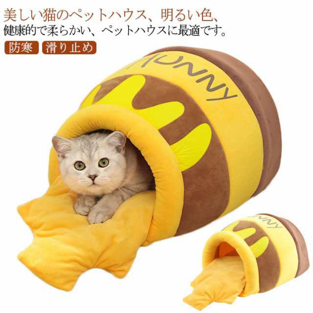 キャットハウス ドーム型 冬用 猫ベッド 猫 犬用 ベッド ペットベッド ドーム型 ハチミツ型 ハウスソファー 猫犬ベッド マット クッション付き 猫ハウス 保温 防寒 あったか かわいい 柔らかい 洗える 滑り止め 小型犬 猫 ペットハウス 室内用