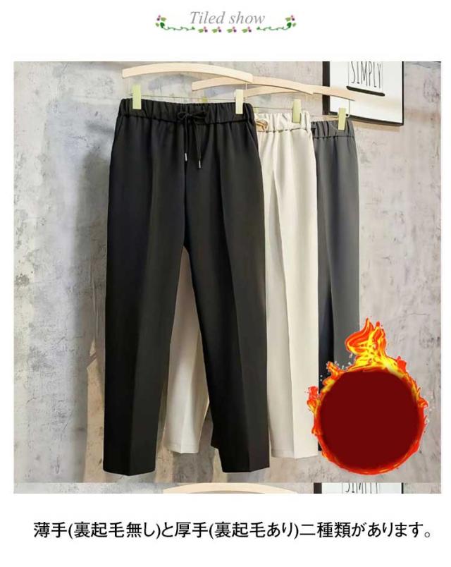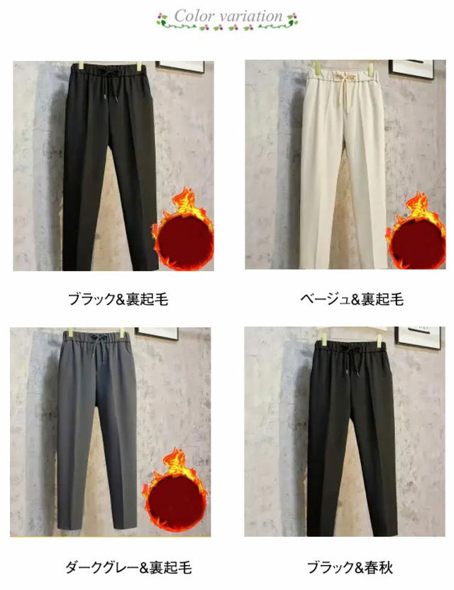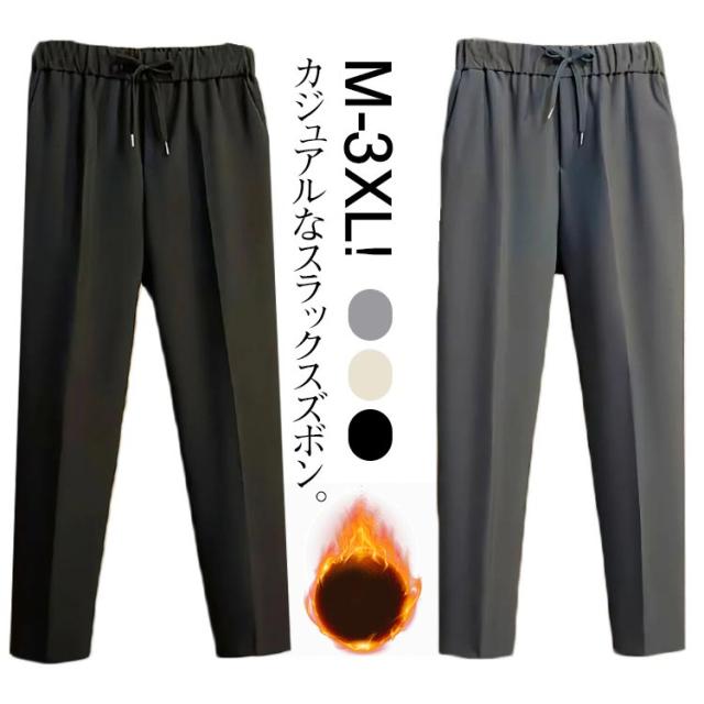 | M-3XL!カジュアルなスラックスズボン。 薄手(裏起毛無し)と厚手(裏起毛あり)二種類があります。 生地には柔らかくて通気性もよいの素材を採用し、ソフトな肌触りが魅力、長時間着用していても着心地良い、快適な穿き心地を実現しています。 ウエスト部分はゴムが付きストレスなく快適な履き心地を与えてくれます。 | |