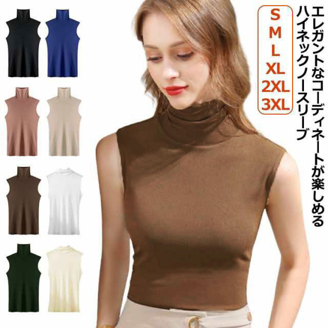 タートルネック ボトルネック ノースリーブ モダール 薄手 春夏 秋冬インナー ノースリーブ ノースリブ トップス カットソー コットン 綿 ハイネック ノースリーブ タートルネック ハイネック 送料無料