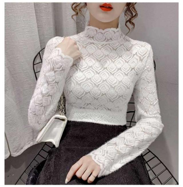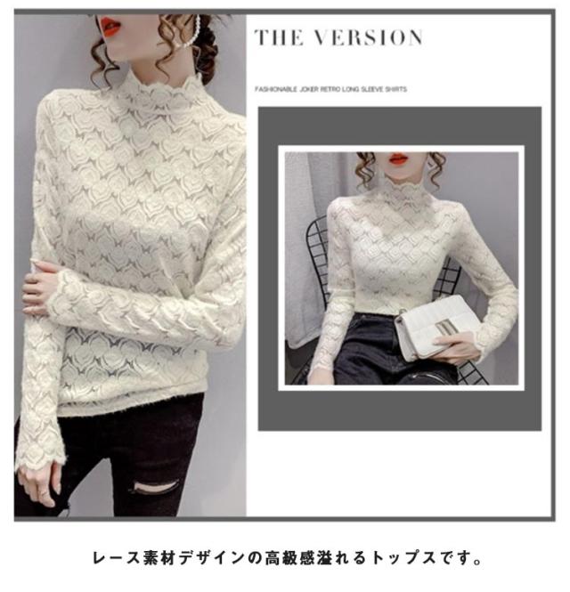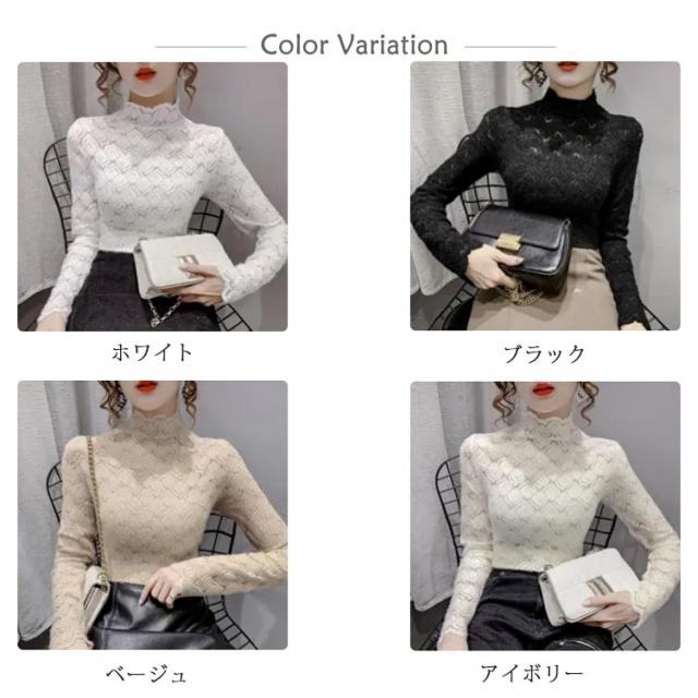 レース カットソー レディース ニット セーター インナーウェア 長袖 タイト 透け感 セクシー トップス ハイネック タートルネック 厚手 tシャツ 着痩せ 暖かい 防寒 柔らかい 春 秋 冬 20代 30代 40代 プルオーバー オシャレ 大人 無地 シンプル 送料無料