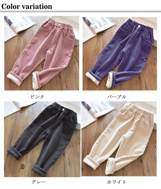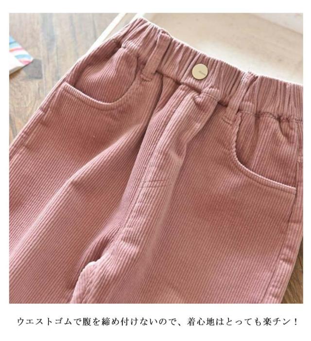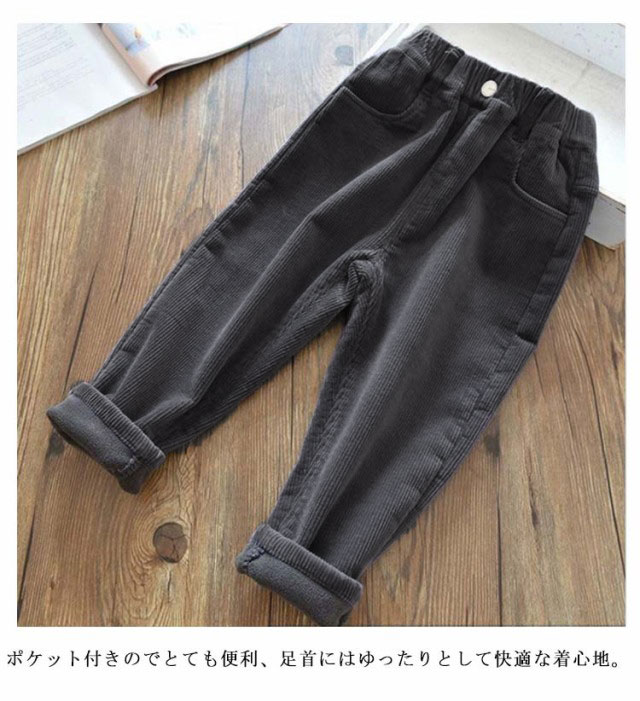 | シンプルでオシャレなキッズコーデュロイパンツが登場! 程よい厚みのコーデュロイ素材を使用しています。 ウエストゴムで腹を締め付けないので、着心地はとっても楽チン! ポケット付きのでとても便利、足首にはゆったりとして快適な着心地。 | |