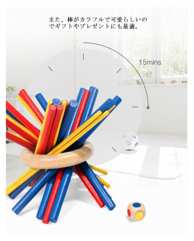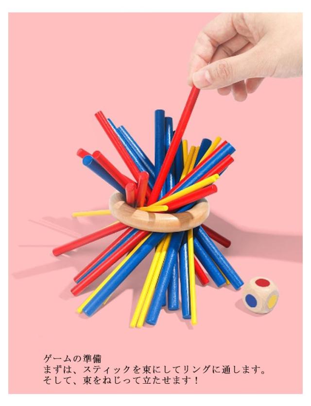 木製バランスゲーム ボードゲーム 棒倒しゲーム テーブルゲーム 子供 大人 棒抜き 抜き取りゲーム スティッキー おもちゃ カラフル 木のおもちゃ 積み木ブロック 立体パズル ドミノブロック サイコロ付き 知育玩具