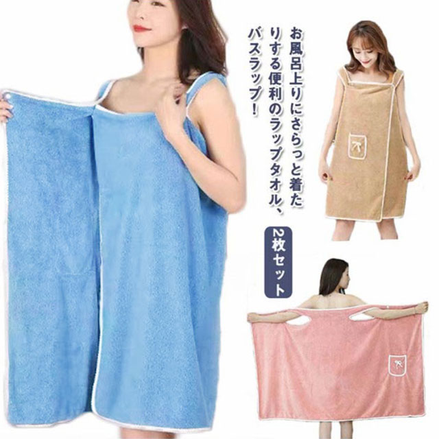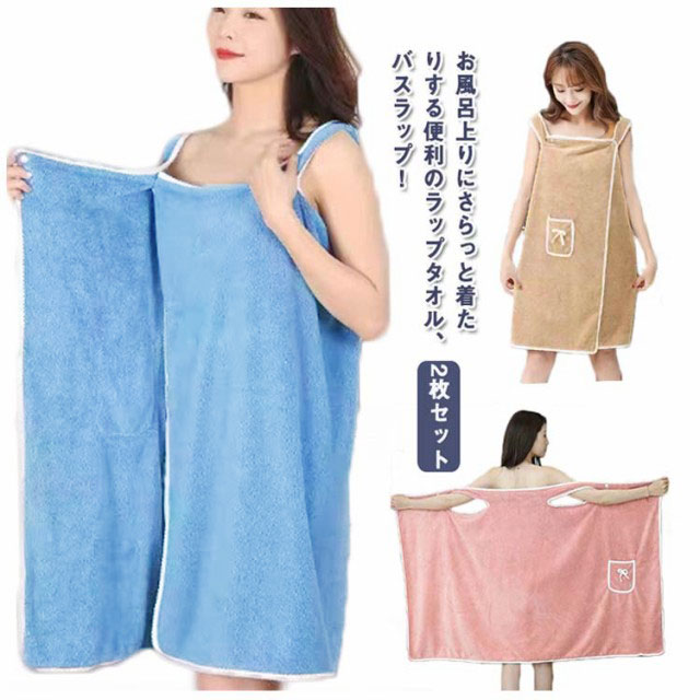 2枚セット 着るバスタオル レディース バスローブ ラップタオル 大人用 ふわふわ 女の子 かわいい タオルワンピース 吸水タオル 大判タオル サウナ 温泉 スイミング お風呂 巻きタオル
