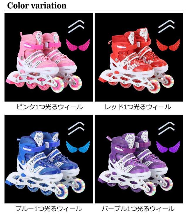 | お子さまから大人まで年齢を問わず楽しめるインラインスケート。 【サイズ調整可】簡単に調整可能なので成長期のお子様に最適しています! 【二重プロテクション】二重プロテクションシステム、標準的な安全バックル&マジックテープがあり、安全性と快適さを保ちます。 【1つ発光ホイール】充電不要のホイールが回るとキラキラと光る★滑るときにピカピカと光ってカッコイイ! 【右足ブレーキ】運動の習慣に合わせて、左足は体重を支える、右足の独立ブレーキ、使い易くて安全です。 【通気性抜群】長時間使用でも汗でべたつかず快適です、滑り心地とフィット感をもたらします。 【安定性と耐久性】インラインスケートの表面高強度衝突の対策を講じ、衝撃吸収材を使用し、振動を防ぐ 、安定感があります。安全性と快適さを確保します。一列四つのスケートの構造で、インラインスケートを順調に回る、摩擦抗性が少なく、耐久性に優れ、長時間使用しても大丈夫です。 【幅広い対象】あらゆる年齢の子供たちに愛されており、大人にとっても楽しいことです。 男女を問わず、学生から社会人まで、あらゆる方も楽しめます。広場、公園などの広い場所で簡単に有酸素運動ができます。 | |