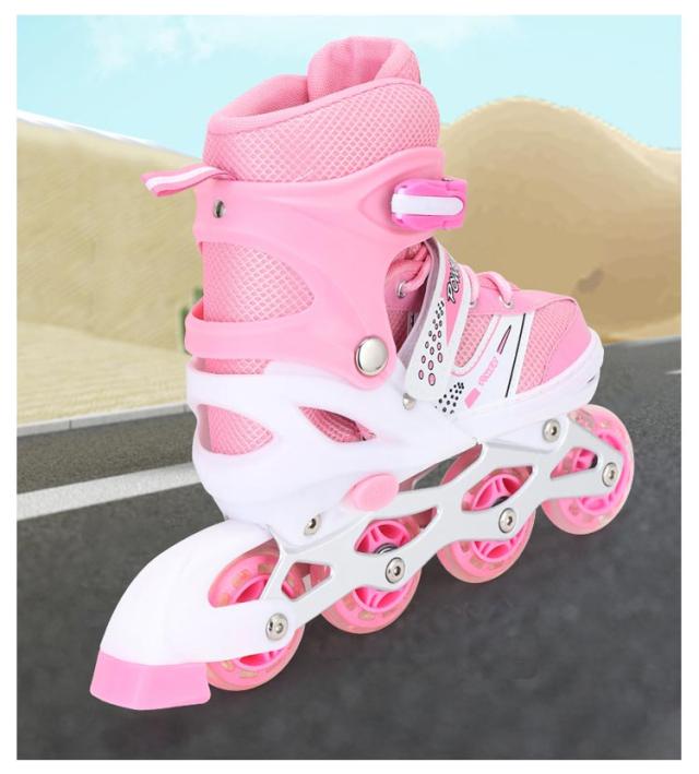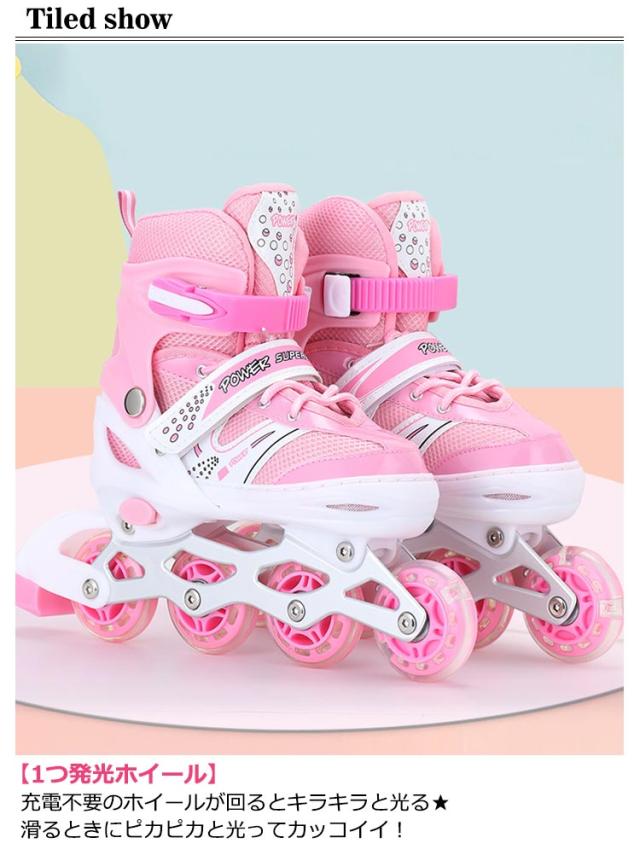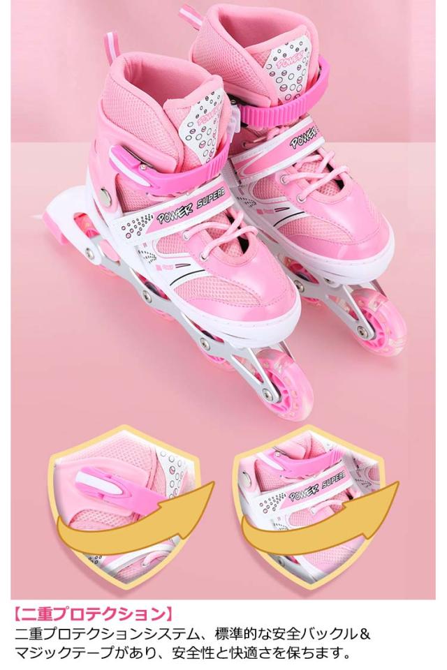 インラインスケート 大人 子供 ジュニア インラインシューズ ローラースケート キッズ フィギュアスケート 女の子 男の子 サイズ調整可能 1つ光るウィール 初心者向け 子供の日 誕生日 プレゼント ローラーブレード スポーツ 玩具 おもちゃ