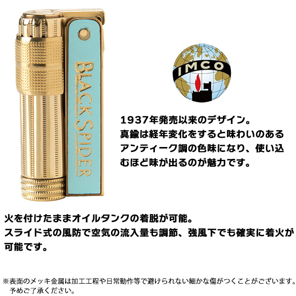 オイルライター イムコ・スーパー ブラックスパイダー アイス #62006 IMCO SUPER 6700P イムコスーパー 真鍮 ブラス 革張り ワンタッチ着火 オイルタンク着脱可能 スライド式風防 フリント 柘製作所