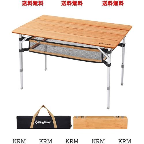 KingCamp キャンプテーブル 折り畳み メッシュ アウトドアテーブル バンブー 高さ調整 天然孟宗竹 ローテーブル コンパクト 4折 組立不要