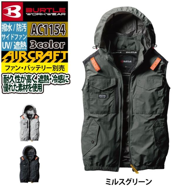 バートル BURTLE 作業服 作業着 2025春夏新作 エアークラフト AC1154 タクティカルベスト XXL 単品 作業服 サイドファン 遮熱 AIRCRAFT