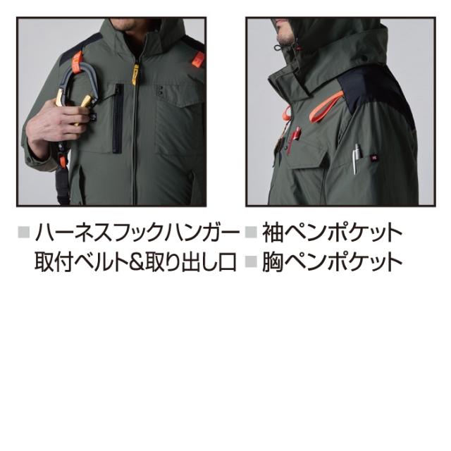 ◇ヘルメットに対応する大型フードは用途に合わせ着脱可能