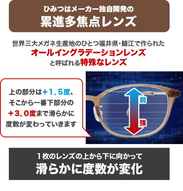 ひみつはメーカー独自開発の累進多焦点レンズ。