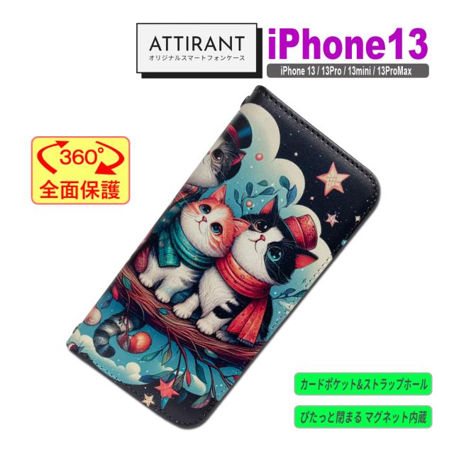iPhone 13 ケース 手帳型 カバー 13 Pro mini ProMax 猫 ねこ かわいい キャット アイフォンケース
