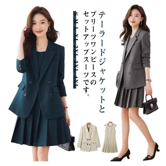 スーツ レディース セレモニースーツ 入学式 ママスーツ 卒業式 スーツ プリーツスカート ワンピース テーラードジャケット フォーマルスーツ ワンピーススーツ セットアップ ストレッチ 長袖 大きいサイズ 30代 40代 50代