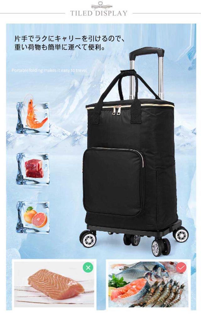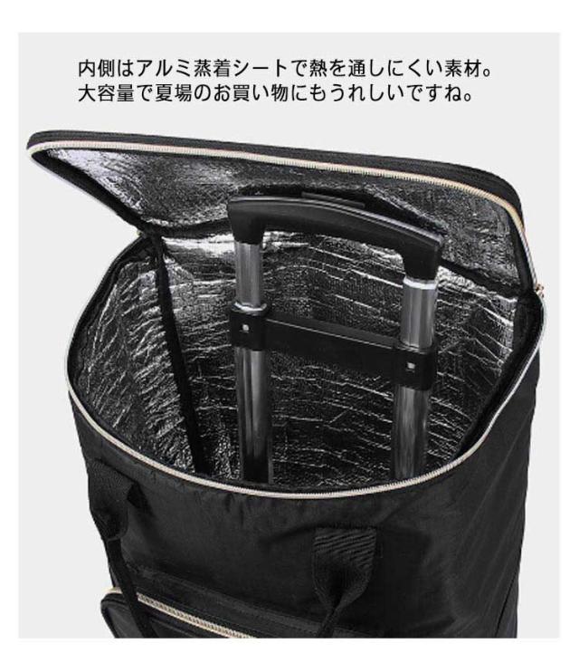 | ・アウトドアやショッピングに便利な保冷保温機能付きショッピングカート ・内側はアルミ蒸着シートで熱を通しにくい素材。大容量で夏場のお買い物にもうれしいですね。 ・片手でラクにキャリーを引けるので、重い荷物も簡単に運べて便利。 ・折畳み可能なので、収納も持ち運びも楽々。 | |