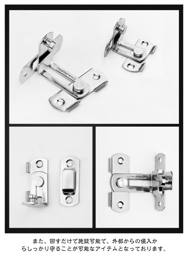 後付け 引き戸 窓 ドアロック ステンレス製 90度留め金タイプ シルバー 3個 スライドロック式 スライド式 後付けタイプ ドアバックル 90度 ドア ロック 引き戸 鍵 留め金 後付け スライド式 留め具 セキュリティ対策