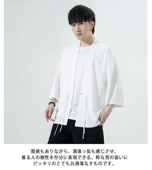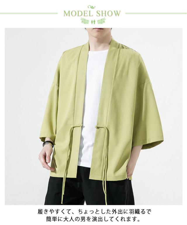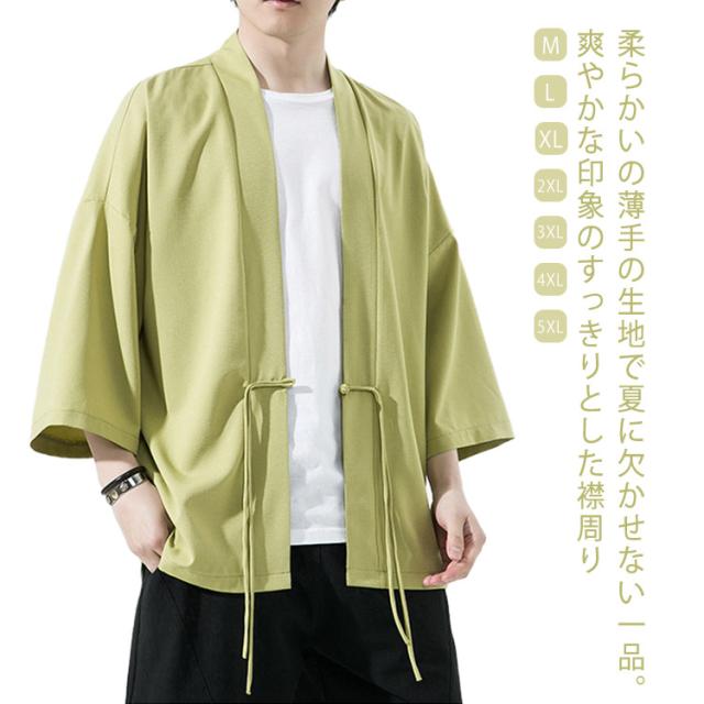 M~5XL カーディガン 夏 7分丈 羽織り 春夏用 甚平 七分袖 アイスシルク チャイナボタン サマー 着物 薄手 涼しい おしゃれ ゆったり 無地 サマー カーディガン メンズファッション 大きくサイズ 部屋着