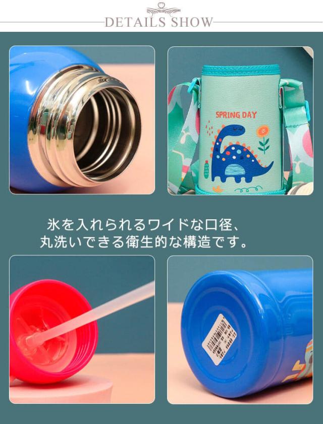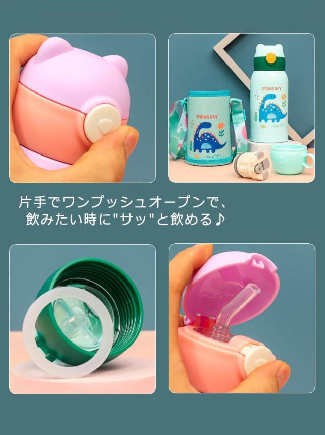 | ・ストロー付きでいつでもどこでも飲みやすいステンレスボトル ・片手でワンプッシュオープンで、飲みたい時に"サッ"と飲める♪ ・幼稚園や保育園、小学校に持っていくのにちょうどいいサイズ感。 ・氷を入れられるワイドな口径、丸洗いできる衛生的な構造です。 ・お子さまご自身で持ち運びがしやすい、カバー+ショルダーベルト一体型デザイン。 | |