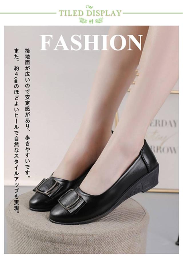 22.5cm〜25cm パンプス ローヒール レディース シューズ 痛くない ウェッジソール 走れる 4cmヒール 美脚 脱げない シューズ 外反母趾 冠婚葬祭 レディース シューズ ママ プレゼント ギフト
