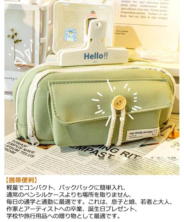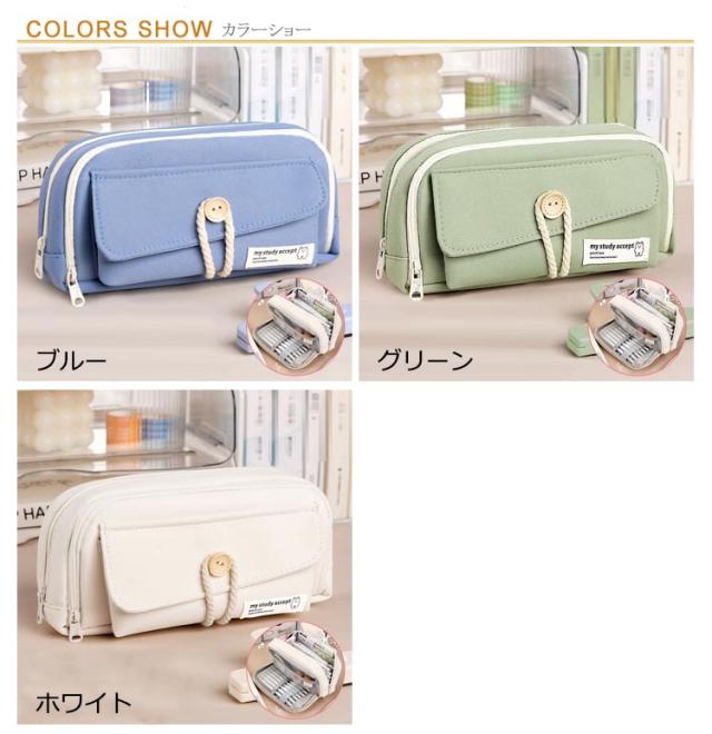 筆箱 ペンケース 大容量 多機能 シンプル 小物収納 軽量 ペン袋 ツールペンケース ポーチ 帆布 筆入れ 小物入れ ふでばこ 小学生 中学生 高校生 大学生 男の子 女の子 子供 社会人用 かわいい おしゃれ 筆袋 韓国 ブルー グリーン ホワイト 白 送料無料