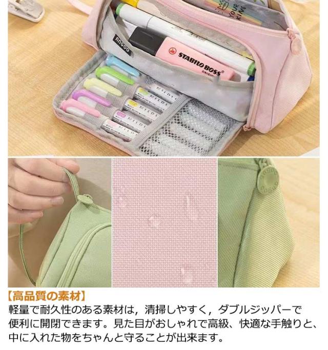 | 見た目がおしゃれで高級、快適な手触りと優れる耐久性なペンケース 【大容量】 サイズ:210*115*80mm広々としたスペースには、最大65本のペン(※ペンの太さによって異なる)、消しゴム、付箋、ハサミ、定規、メジャー、修正テープなどの小物もたっぷり収容できます。所持品や文房具の保管に最適です。 【高品質の素材】 軽量で耐久性のある素材は,清掃しやすく,ダブルジッパーで便利に開閉できます。見た目がおしゃれで高級、快適な手触りと、中に入れた物をちゃんと守ることが出来ます。 【多機能】 ペン袋としてだけでなく、化粧品バッグ、クラフトバッグ、旅行または化粧品バッグ、3C製品またはアクセサリーバッグなど、収納イヤホン、スマートウォッチ、充電ケーブル、、口紅化粧品などにも使えます。 【ユニークなデザイン】 メッシュポケットとペンインサートで、カードやメモ、よく使うペンを別々に収納できます。色々なアイテムを個別に仕分けでき、必要な文房具をすばやく見つけることができます。 【携帯便利】 軽量でコンパクト、バックパックに簡単入れ、通常のペンシルケースよりも場所を取りません、毎日の通学と通勤に最適です。これは、息子と娘、若者と大人、作家とアーティストへの卒業、誕生日プレゼント、学校や旅行用品への贈り物として最適です。 | |