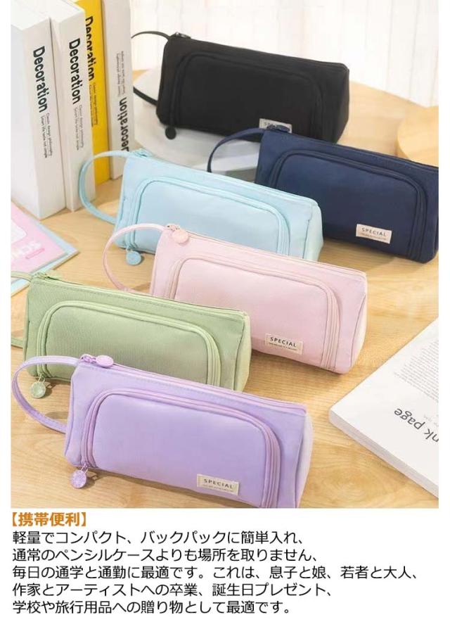 筆箱 ペンケース 大容量 多機能 小物収納 軽量 ペン袋 ツールペンケース ポーチ 帆布 筆入れ 小物入れ ふでばこ 小学生 中学生 高校生 大学生 男の子 女の子 子供 社会人用 かわいい おしゃれ 筆袋 韓国 ブラック パープル ピンク ネイビー グリーン 送料無料