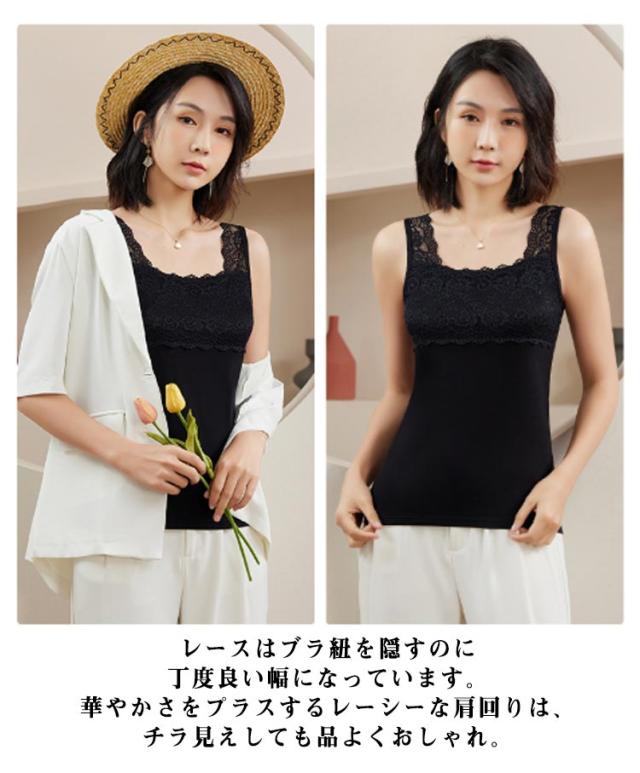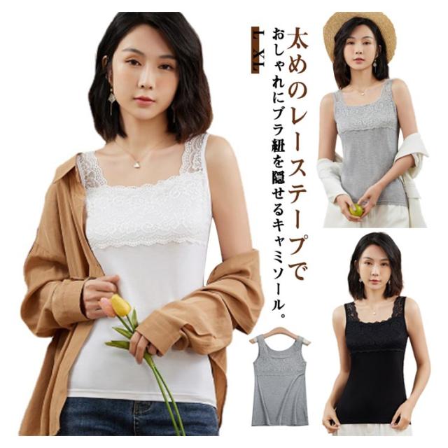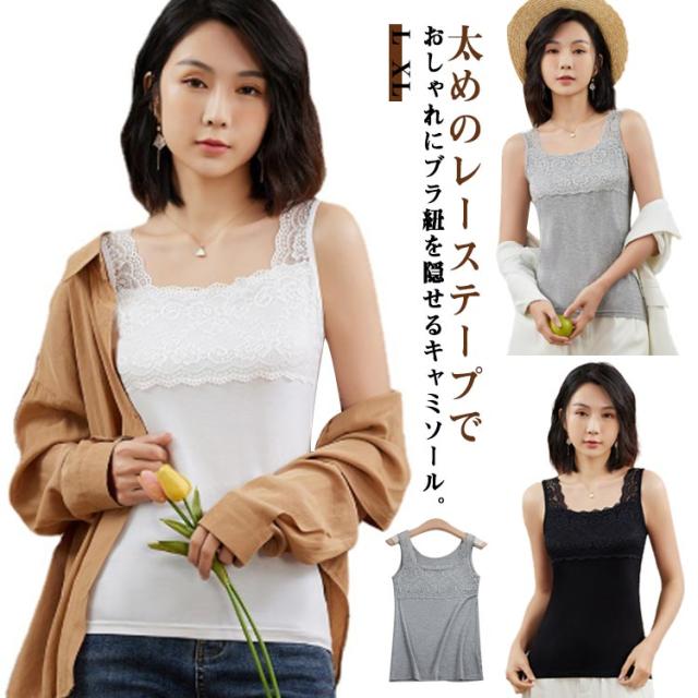 ブラ紐を隠せるインナー キャミソール レース付き レース ブラ紐 隠し ブラ紐隠し トップス タンクトップ インナー カットソー ノースリーブ 大人 無地 レディース 定番 インナータンクトップ レースキャミ ルームウェア 下着 肌着