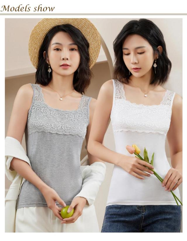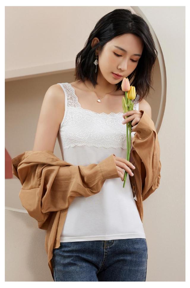 | 太めのレーステープでおしゃれにブラ紐を隠せるキャミソール。 定番カラーのホワイト、グレー、ブラックの3色は、どのようなトップスともなじみがよく本当におすすめです。 肩紐部分が太めのレーステープで、胸元にもレースをあしらってあるので、組み合わせ方によってはレースがほどよいアクセントになります。 レースはブラ紐を隠すのに丁度良い幅になっています。華やかさをプラスするレーシーな肩回りは、チラ見えしても品よくおしゃれ。 普段のインナーとしてはもちろん、トレンドのシアーシャツやカーディガンと合わせて、旬なレイヤードコーデを楽しめます。 柔らかな素材は快適な着心地で、オールシーズンご愛用いただけます。 | |