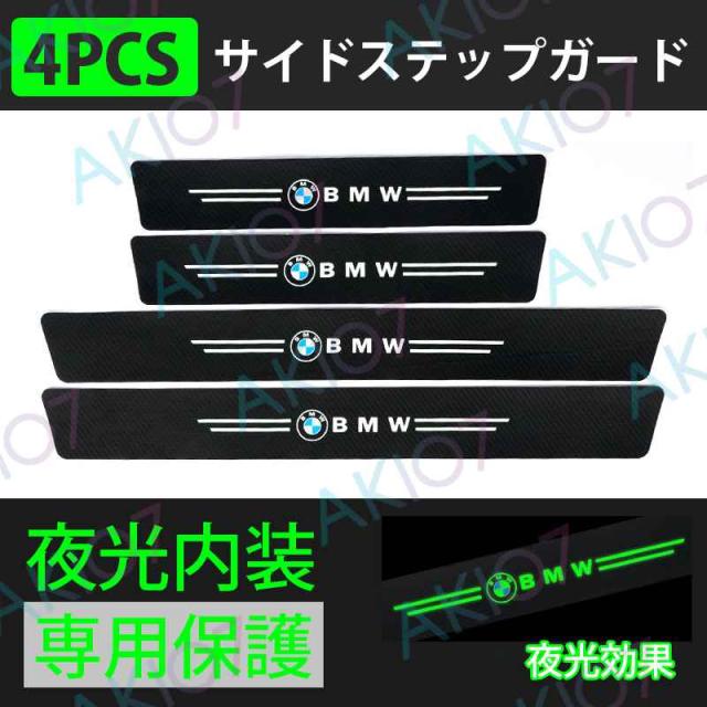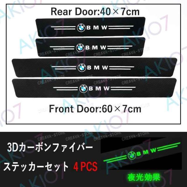 【サイドステップガード4PCS】BMW ステッカーセット 夜光 トリム保護ステッカー 3Dカーボンファイバー 内装 ドアガード 汚れ防止 キズ防止