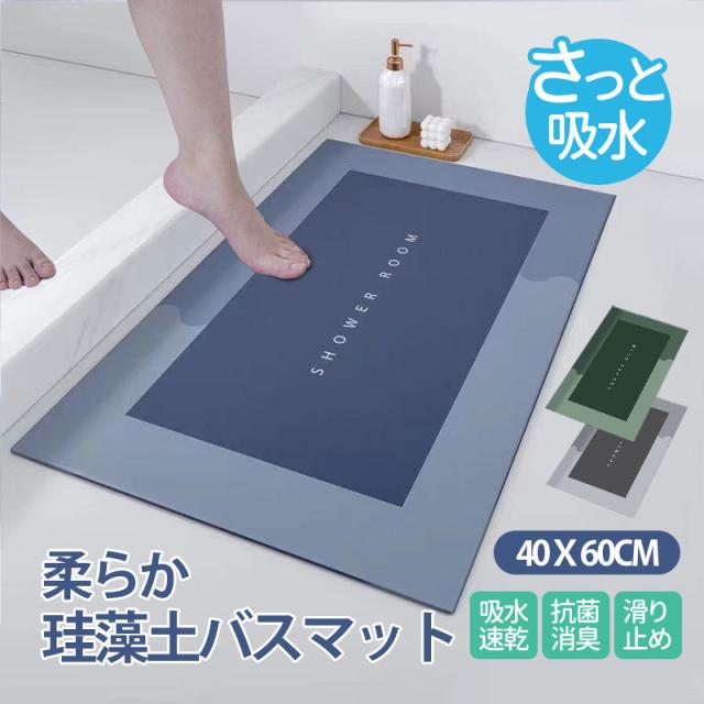 【水曜日まで!10%クーポン配布中】 バスマット 珪藻土 ソフト 吸水 速乾 40×60cm 洗える 珪藻土マット 速乾 吸水 柔らかい 足拭きマット お風呂 水切り