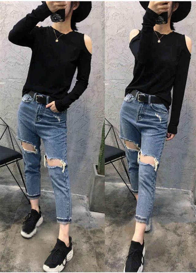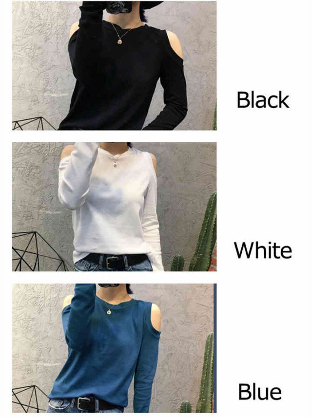 レディース ロングTシャツ ロンT 大きいサイズ カットソー オープンショルダー トップス オフショル 肩だし 長袖 肩見せ