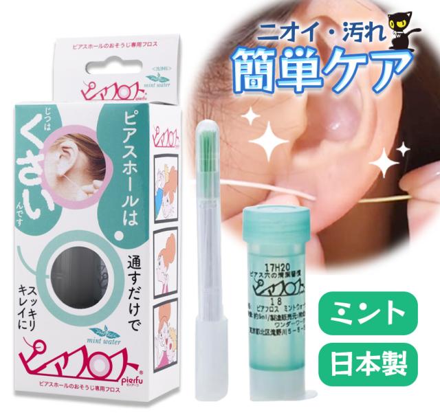 ピアフロス ピアス穴専用 おそうじフロス ピアスホール ピアス穴の臭い 汚れ 洗浄液 ケア用品 ミントウォーター 60本入り