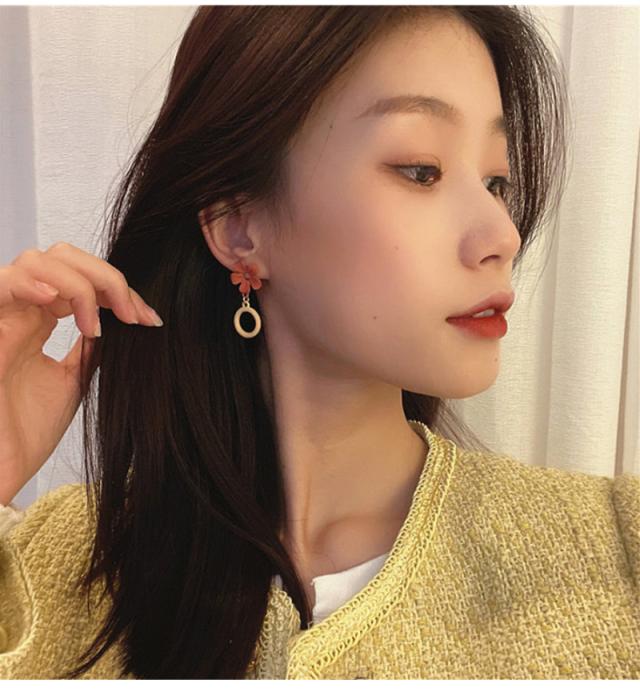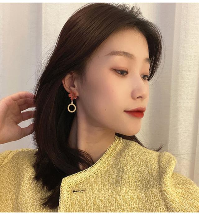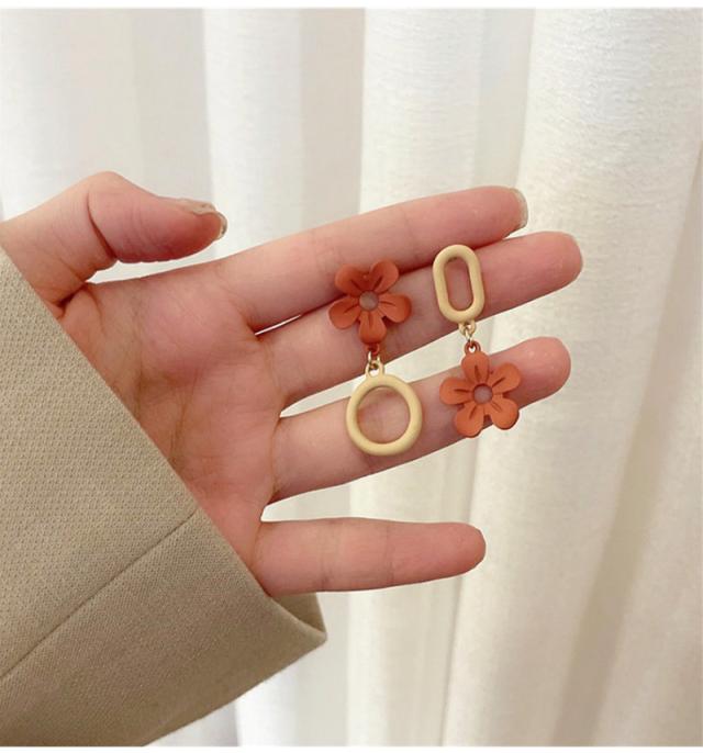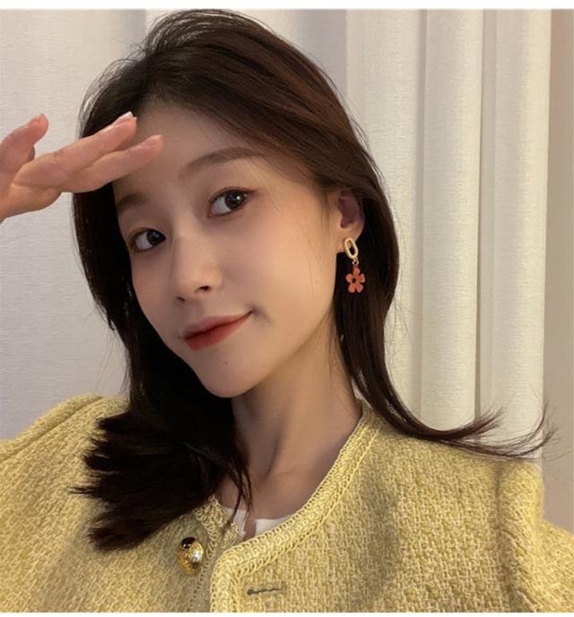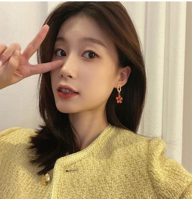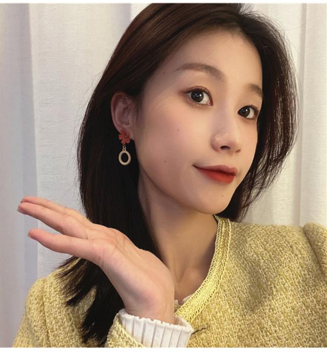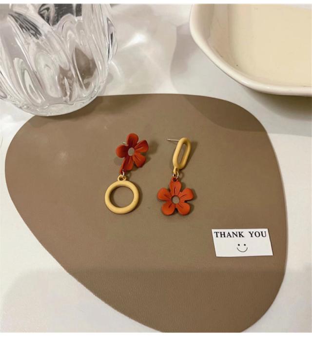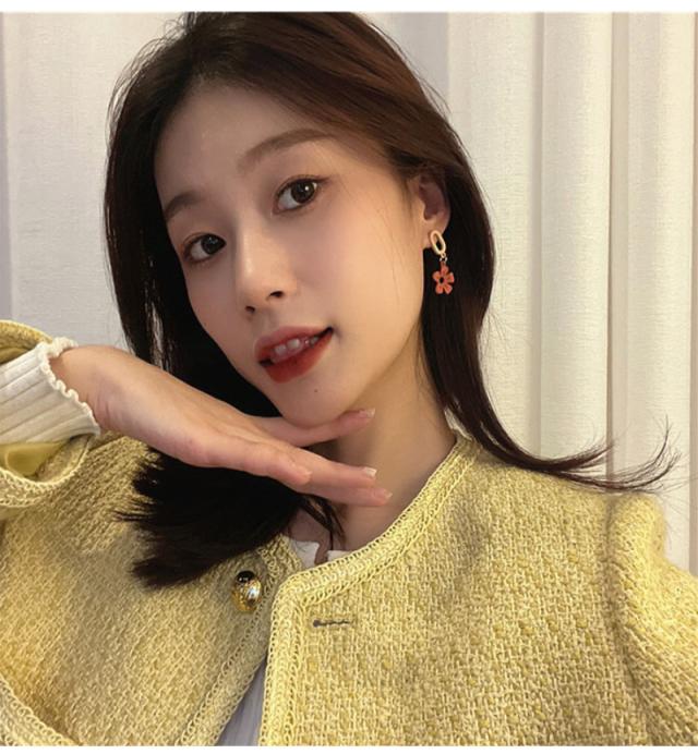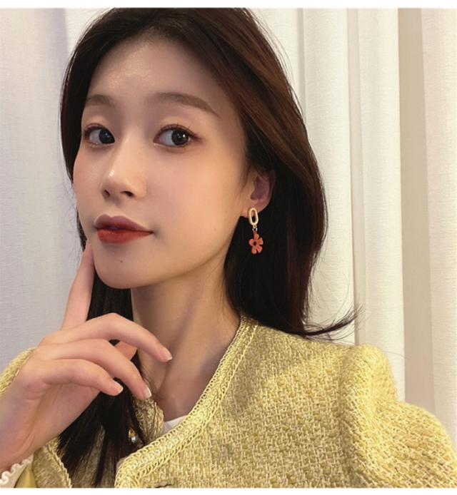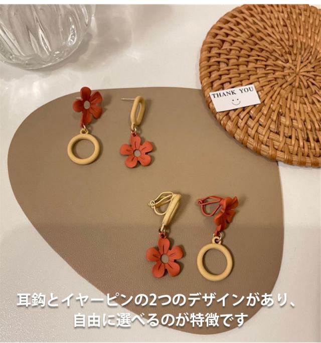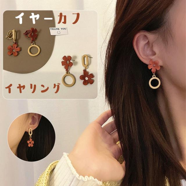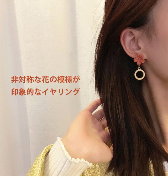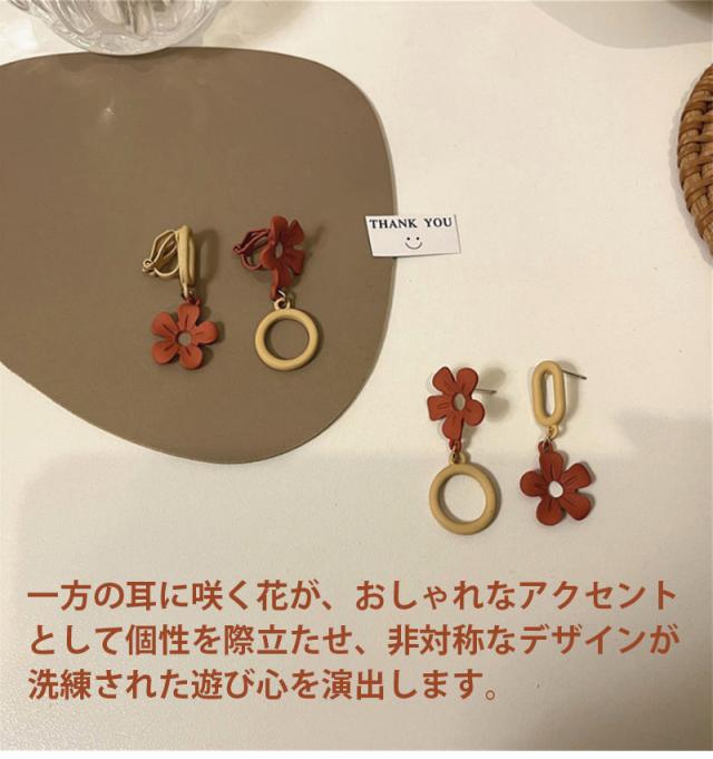 ピアス イヤリング イヤーカフ 花 非対称 レディース 合金 エナメル 金属アレルギー対応 清新 優雅 シンプル アクセサリー