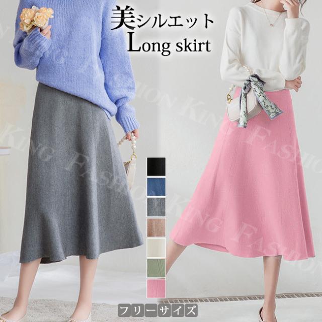 スカート ロングスカート 秋冬 春新作 タイトスカート ストレッチ ハイウエスト ウエストゴム ロング丈 マキシ 定番 大きいサイズ 体型カバー Aライン フレアスカート ゆったり 秋冬 あったか 暖かい マキシ丈スカート 無地 秋 冬 入学式 入園式