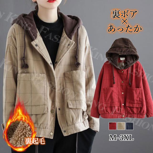 ジャケット アウター 秋 冬 春 あったか 暖かい 裏起毛 厚手 カジュアル マウンテン フード付き 大きいサイズ レディース 秋冬 秋新作 防寒 防風 トップス 長袖 無地 ボアジャケット 送料無料 コート ボアコート ショートコート バレンタインデー
