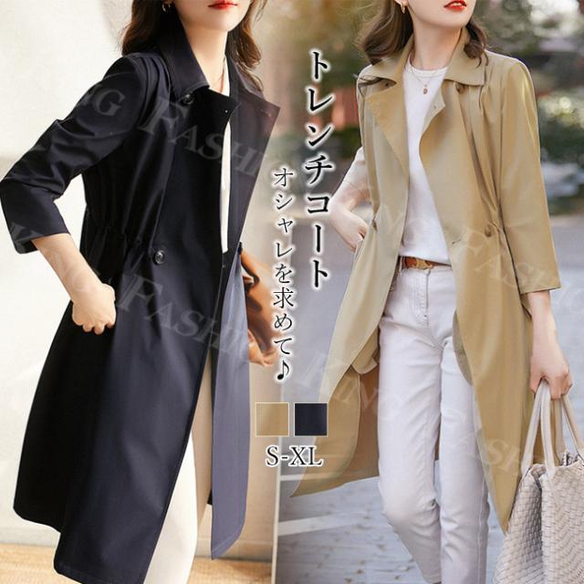 コート レディース 秋冬 春新作 アウター ファッション トレンチコート ロング丈 長袖 ジャケット シンプル 無地 OL ベルト カジュアル ゆったり 送料無料 通勤 大きいサイズ ホワイトデー 卒業式