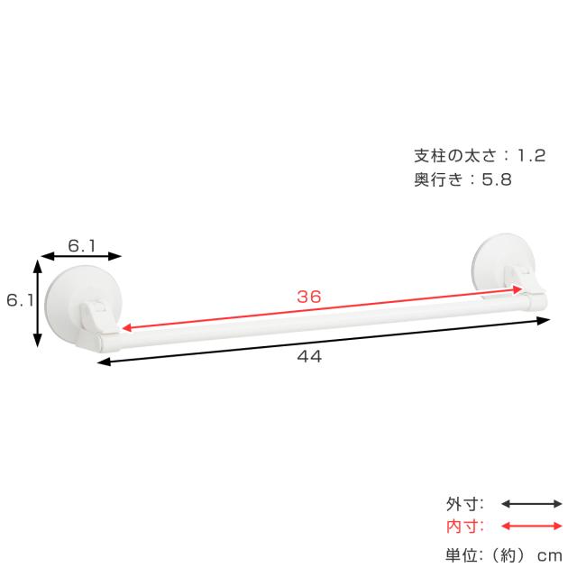 | 材質 | パイプ:ステンレス鋼管(樹脂コーティング) 支持部:ABS樹脂 吸盤:ポリアセタール、塩化ビニル樹脂 |
