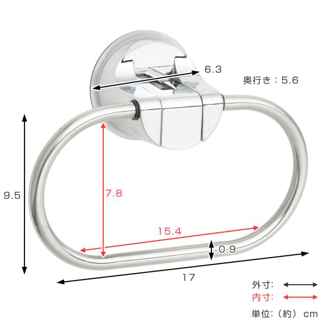 | 材質 | リング:ステンレス鋼管、スチロール樹脂 支持部:ABS樹脂(メッキ仕上げ) 吸盤:ポリアセタール、塩化ビニル樹脂 |