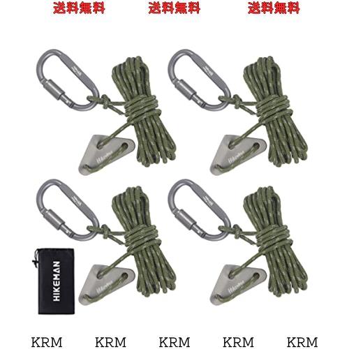 テントロープ パラコード カラビナ付き 調節可能 タープロープ ガイライン 張り綱 反射材入り 太さ 4mm 長さ4M 自在金具 4個セット キャ