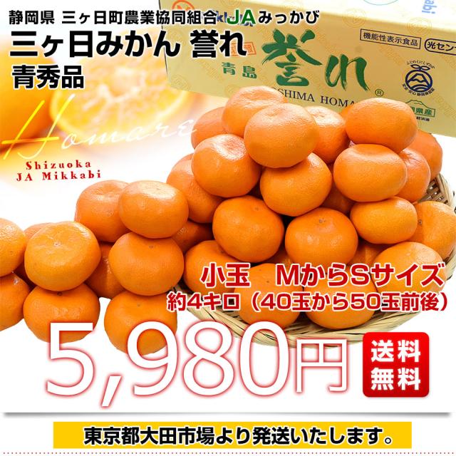 静岡県 JAみっかび 三ヶ日みかん 青島誉れ 希少な小玉 MからSサイズ 青秀品 約4キロ(40玉から50玉前後)蜜柑 ミカン 青島みかん 送料無料