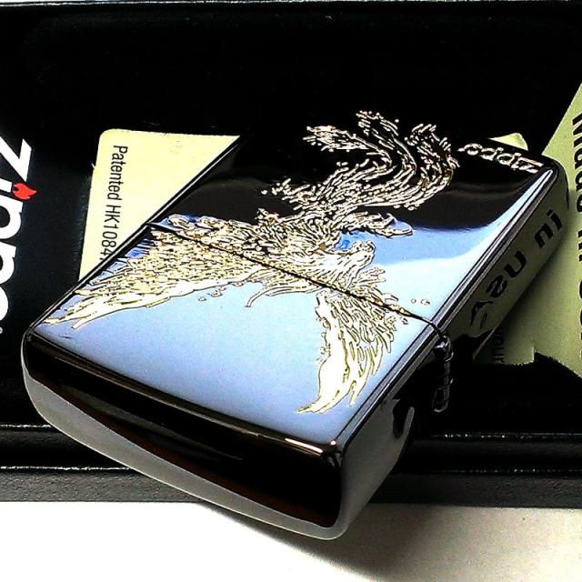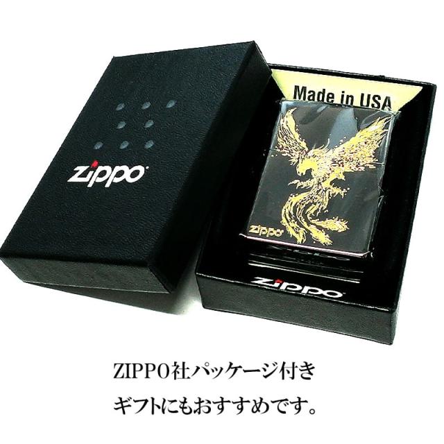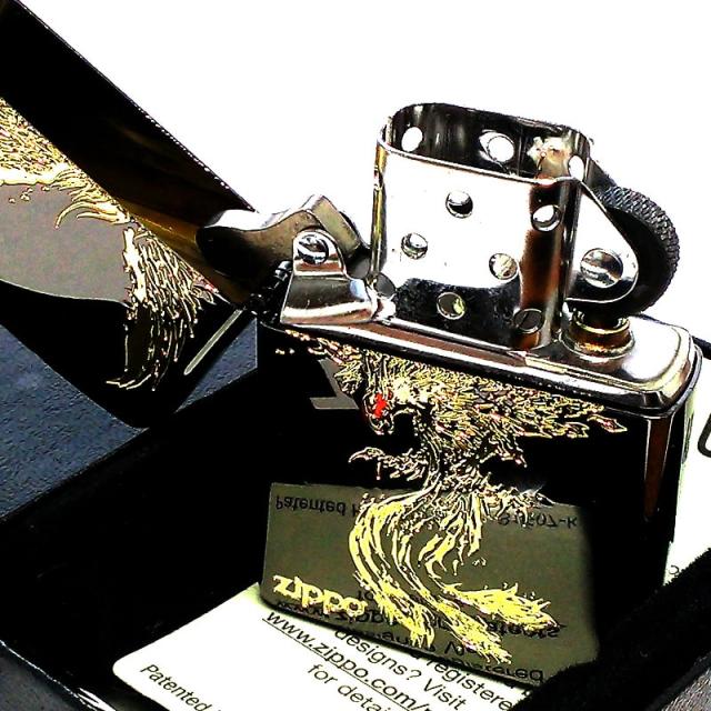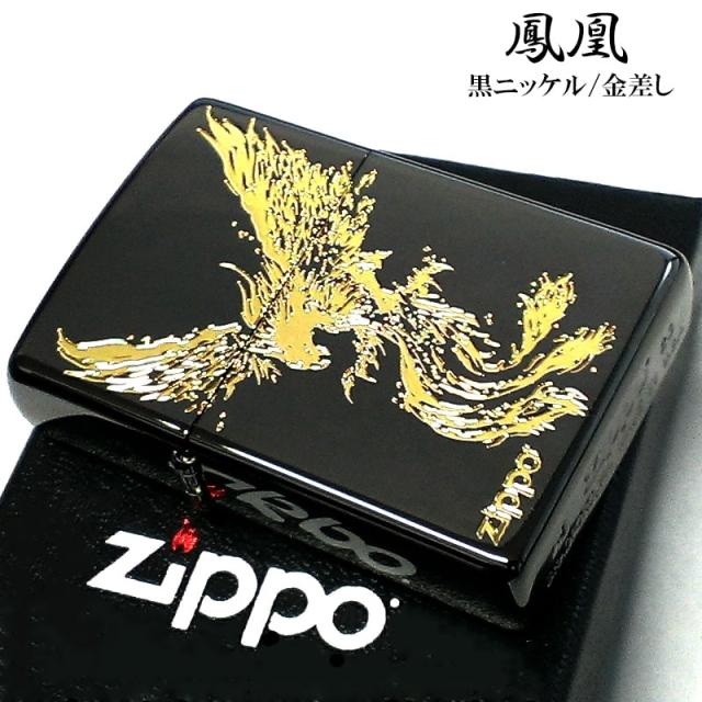 ZIPPO ライター 鳳凰 かっこいい 黒金 和柄 ブラックニッケル 金差し ジッポ ロゴ お守り 彫刻 ゴールド メンズ 御守り おしゃれ