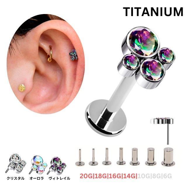 プッシュピアス 20G 18G 16G 14G 全3色 クルスター ラブレットスタッド 金属アレルギー対応 チタンピアス つけっぱなし 軟骨ピアス ボディピアス