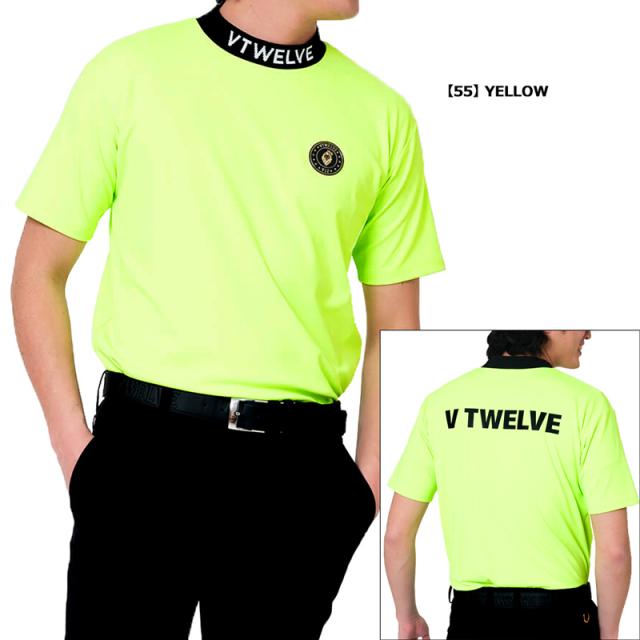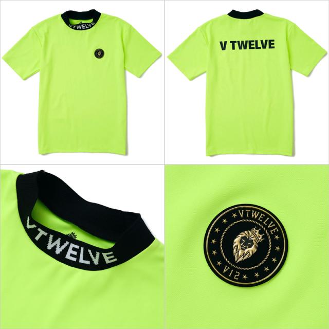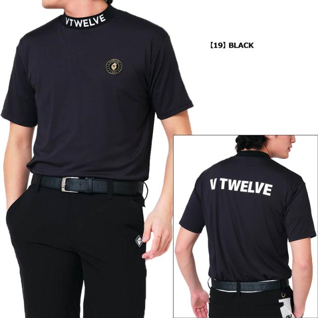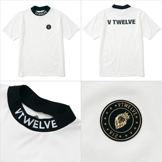 ネック部分にV12ロゴがジャカードで表現されたモックネック半袖シャツ。