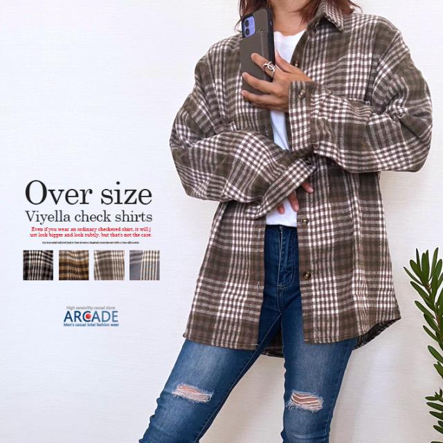 チェックシャツ レディース ネルシャツ アメカジ ストリートファッション ヴィンテージ レトロチェック ドロップショルダー ビエラチェックシャツ