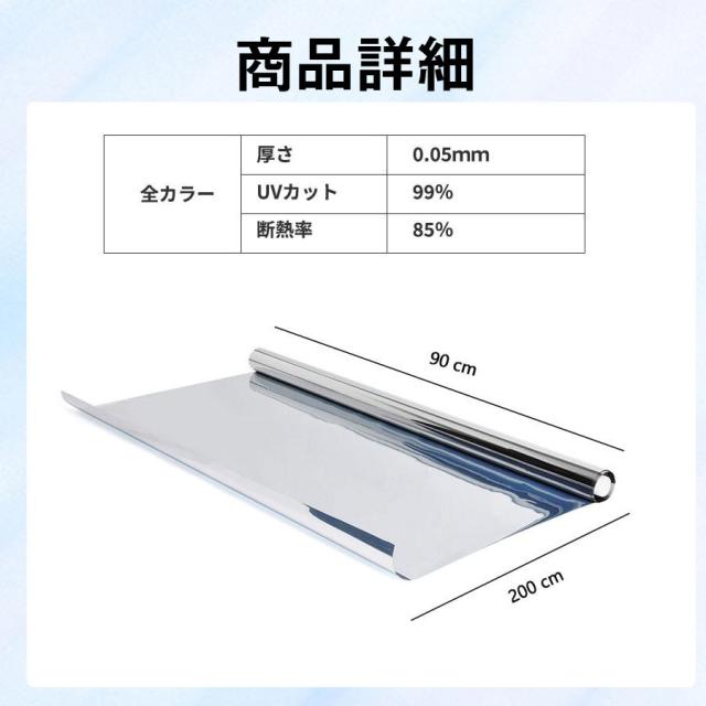 窓ガラス マジックミラー 目隠し シート 90×200cm 断熱シート 貼り直し はがせる 外から見えない 遮光 UVカット 紫外