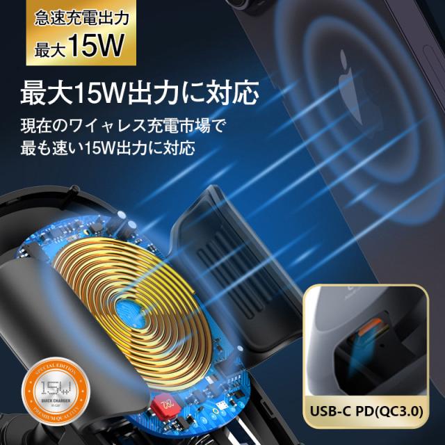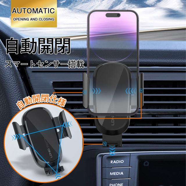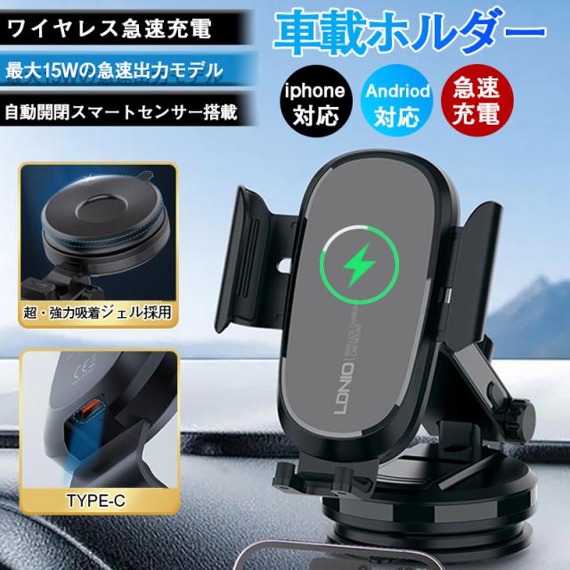 スマホホルダー 車 車載ホルダー 自動開閉 ワイヤレス充電 センサー スタンド ワイヤレス 充電器 吸盤 iPhone Andoid 片手操作