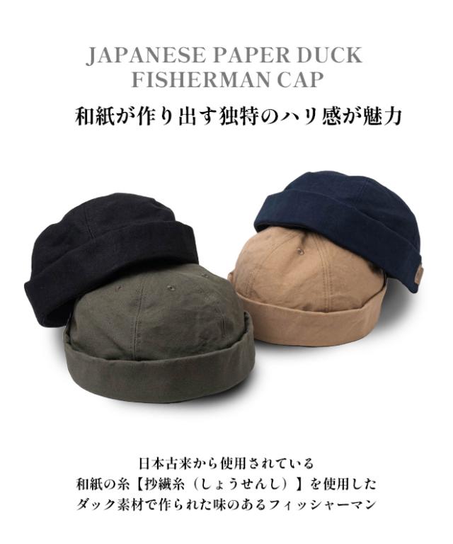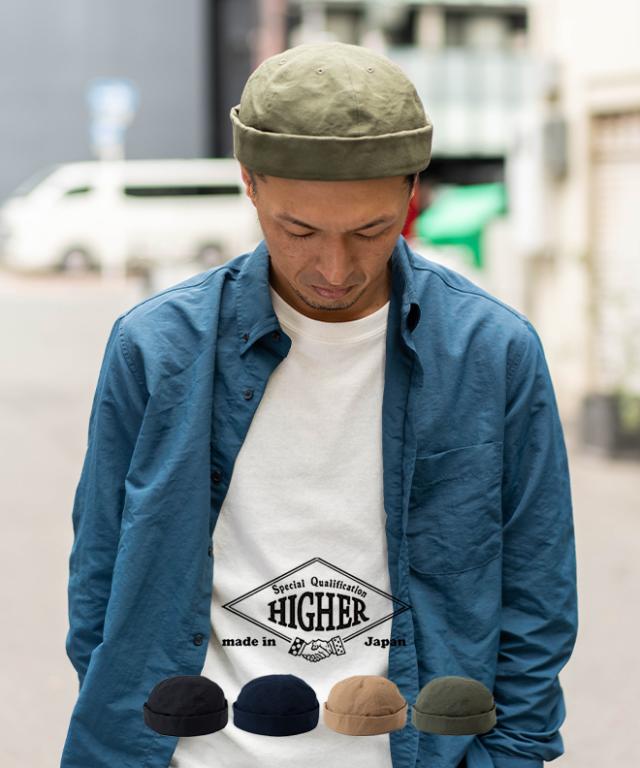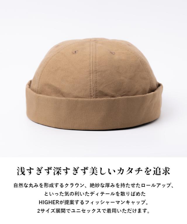 HIGHER ハイアー JAPANESE PAPER DUCK FISHERMAN フィッシャーマンキャップ ロールキャップ 帽子 メンズ レディース コットン ツバ無し 和紙 日本製 春 夏 無地 ワーク アメカジ 黒 ブラック ベージュ カーキ