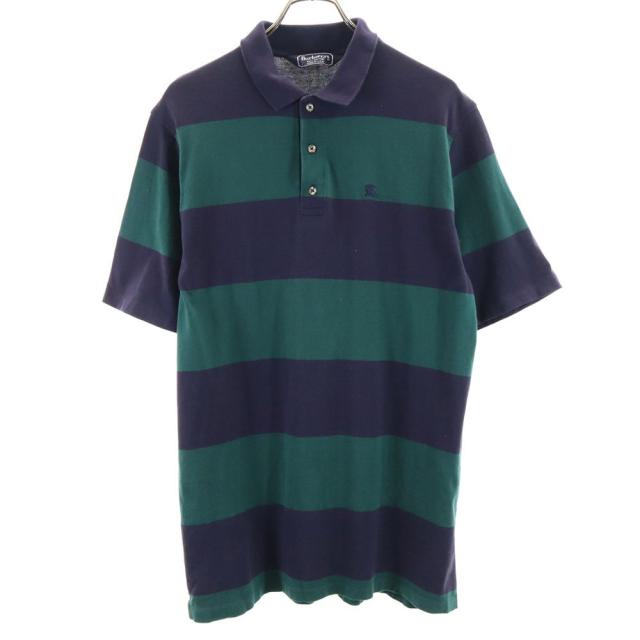 バーバリーズ 90s USA製 オールド ボーダー柄 半袖 ポロシャツ L ネイビー×グリーン Burberrys メンズ