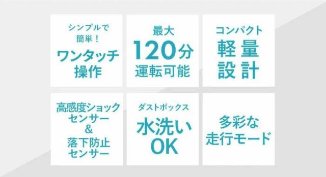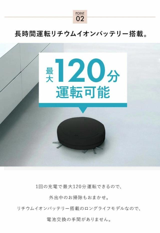 ■連続使用時間最大120分(満充電・電池初期/20℃時)※床の材質や室温などの使用環境により異なります
