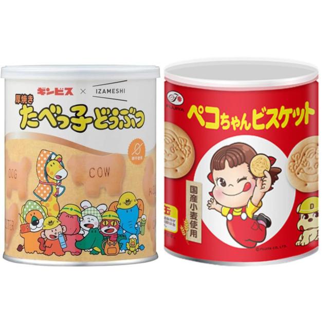 \ 2個セット / 不二家 ペコちゃんどこでもビスケット 保存缶 100g + 厚焼きたべっ子どうぶつ 120g / 非常食 セット品 防災グッズ 保存食 ビスケット