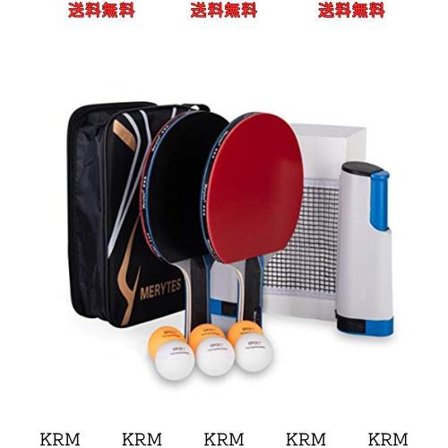Merytes ポータブル 卓球 ラケット ポータブル 卓球セット ラケット2本 ピンポン球6個 卓球用品 卓球ラケット 卓球ボール (ブルー)